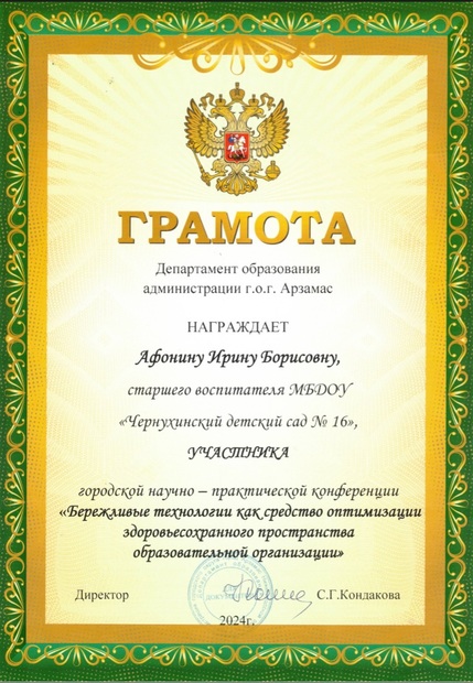 Старший воспитатель МБДОУ "Чернухинский детский сад №16"